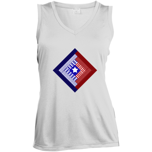 Patriotic Log Cabin Square Ladies' Sleeveless Moisture Absorbing V-Neck