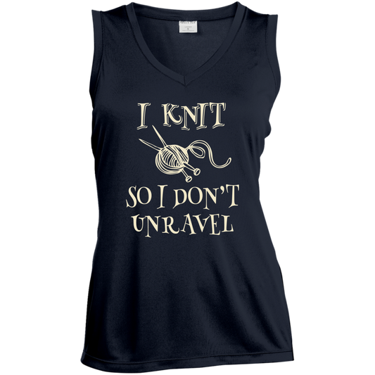 I Knit So I Don't Unravel Ladies' Sleeveless Moisture Absorbing V-Neck