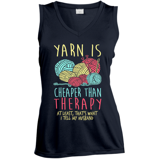 Yarn is Cheaper than Therapy Ladies Sleeveless Moisture Absorbing V-Neck