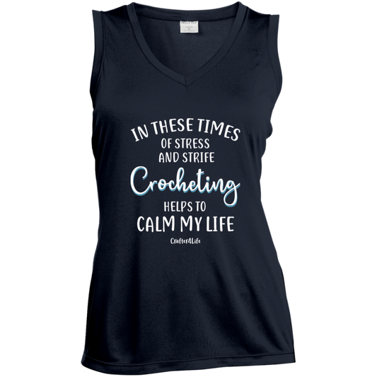 Crocheting Helps to Calm My Life Ladies' Sleeveless Moisture Absorbing V-Neck