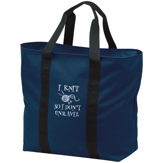 I Knit So I Don't Unravel All Purpose Embroidered Cloth Tote Bag