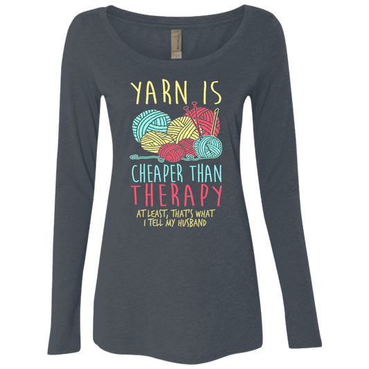 Yarn is Cheaper than Therapy Ladies Triblend LS Scoop