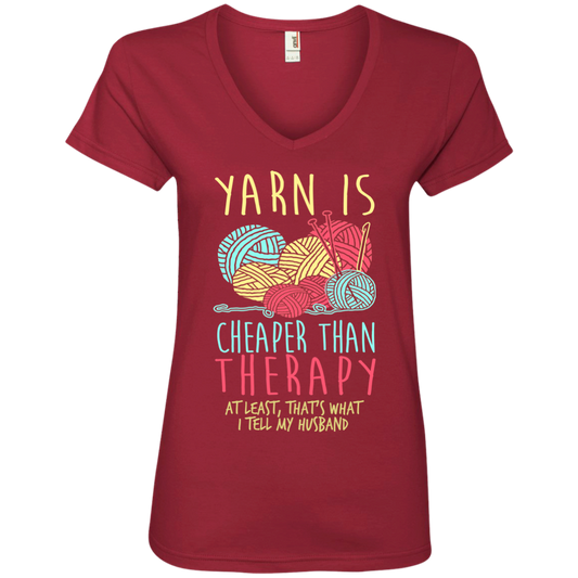 Yarn is Cheaper than Therapy Ladies V-Neck T-Shirt