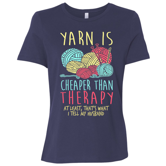 Yarn is Cheaper than Therapy Ladies Relaxed Jersey Short-Sleeve T-Shirt