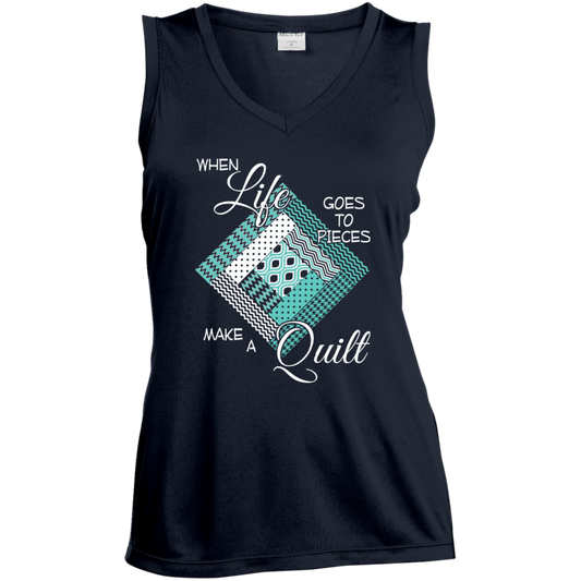 Make a Quilt (turquoise) Ladies Sleeveless V-Neck