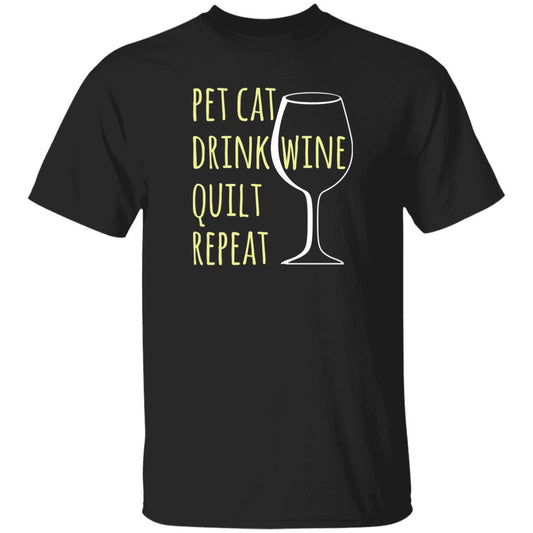 Pet Cat-Drink Wine-Quilt T-Shirt