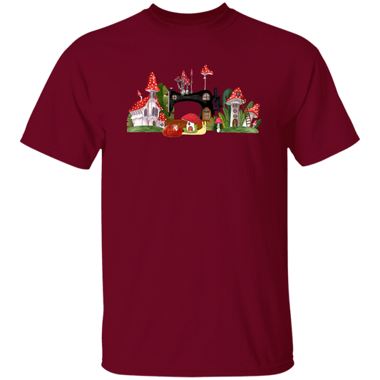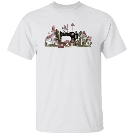 Cottagecore Sewing Mushroom Village T-Shirt - For Yourself, or Makes a Great Gift
