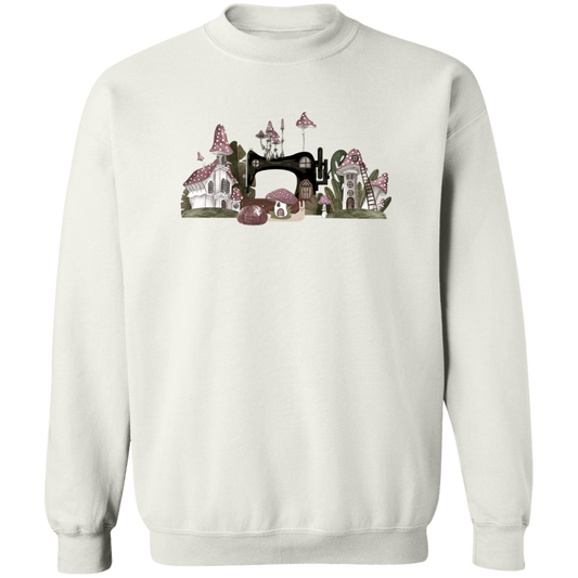 Cottagecore Sewing Mushroom Village Sweatshirt - Cozy Fantasy Gift for Sewers