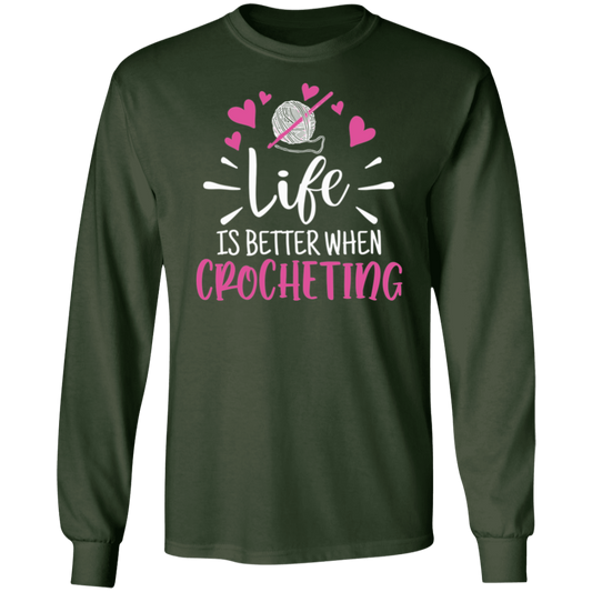 Life is Better when Crocheting LS Ultra Cotton T-Shirt