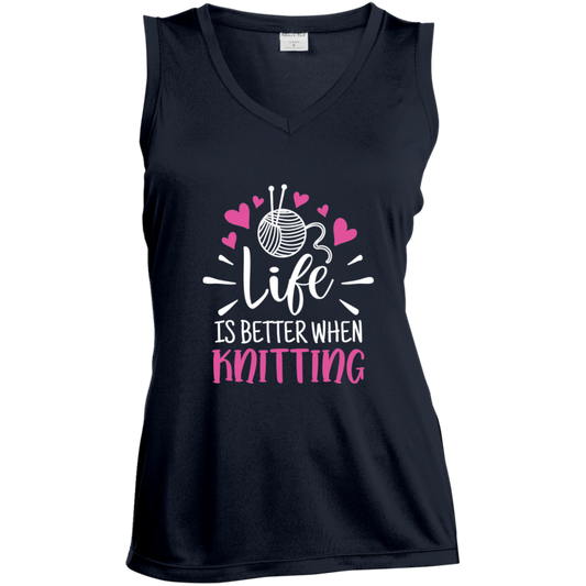 Life is Better When Knitting Ladies' Sleeveless Moisture Absorbing V-Neck