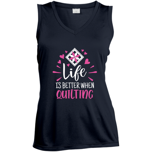 Life is Better When Quilting Ladies' Sleeveless Moisture Absorbing V-Neck