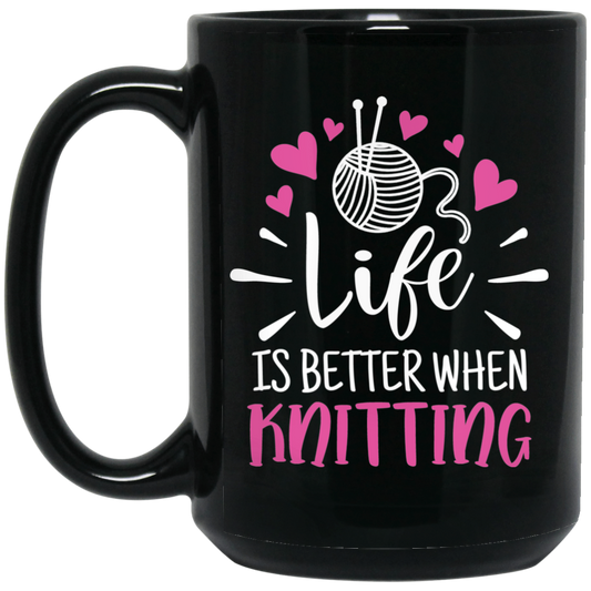 Life is Better When Knitting Black Mugs