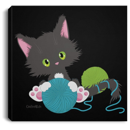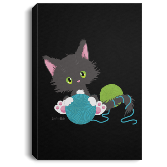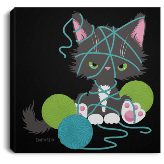 Grey Tuxedo Kitty Holding Ball of Yarn Canvas Wall Art