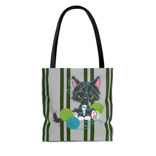 Grey Tuxedo Kitty with Yarn Cloth Tote Bag