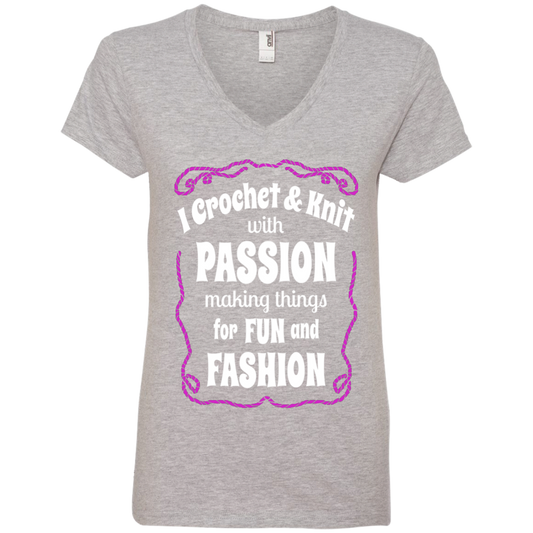 I Crochet & Knit with Passion Ladies V-Neck T-Shirt