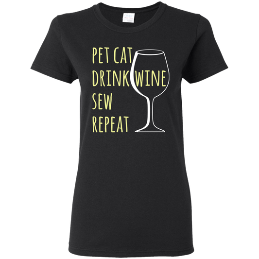 Pet Cat-Drink Wine-Sew Ladies T-Shirt
