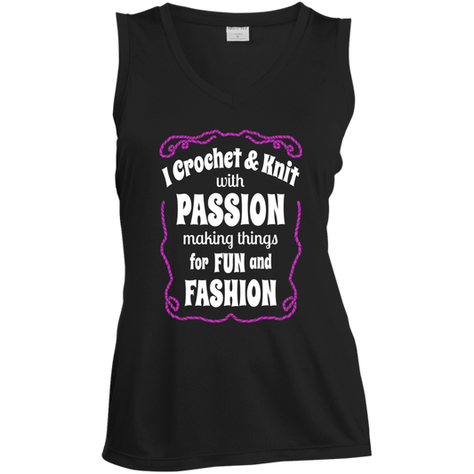 I Crochet & Knit with Passion Ladies Sleeveless Moisture Absorbing V-Neck