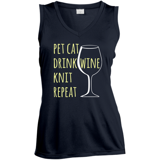 Pet Cat-Drink Wine-Knit Ladies Sleeveless Moisture Absorbing V-Neck
