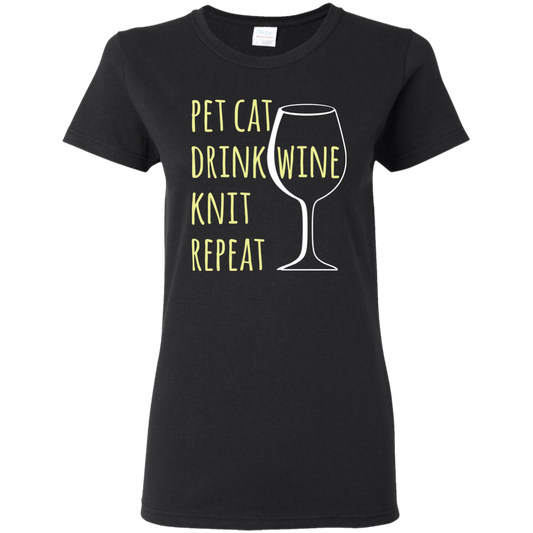 Pet Cat-Drink Wine-Knit Ladies T-Shirt