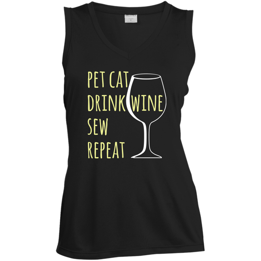 Pet Cat-Drink Wine-Sew Ladies Sleeveless Moisture Absorbing V-Neck