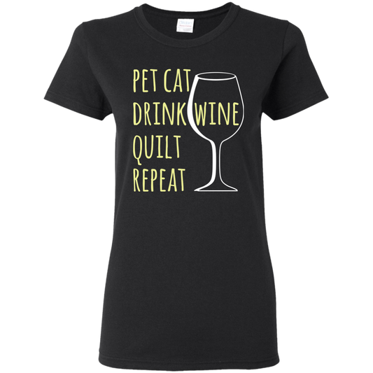 Pet Cat-Drink Wine-Quilt Ladies T-Shirt