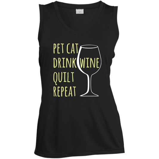 Pet Cat-Drink Wine-Quilt Ladies Sleeveless Moisture Absorbing V-Neck