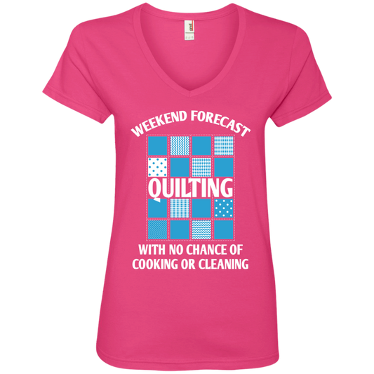 Weekend Forecast Quilting Ladies V-Neck T-Shirt