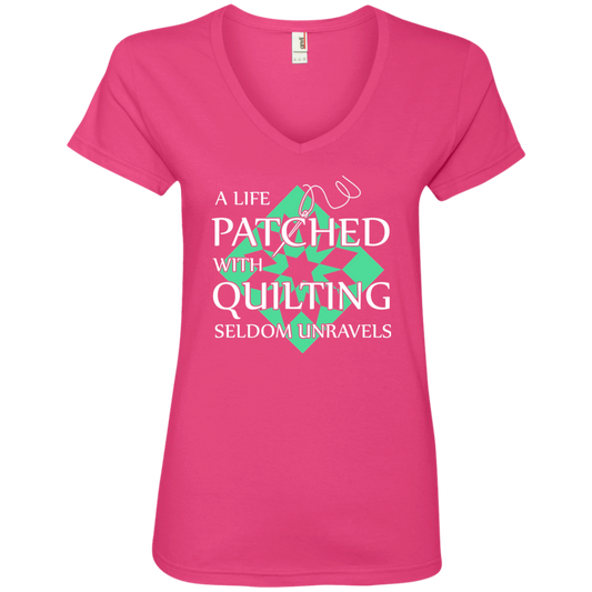 Quilting Seldom Unravels Ladies' V-Neck T-Shirt