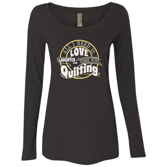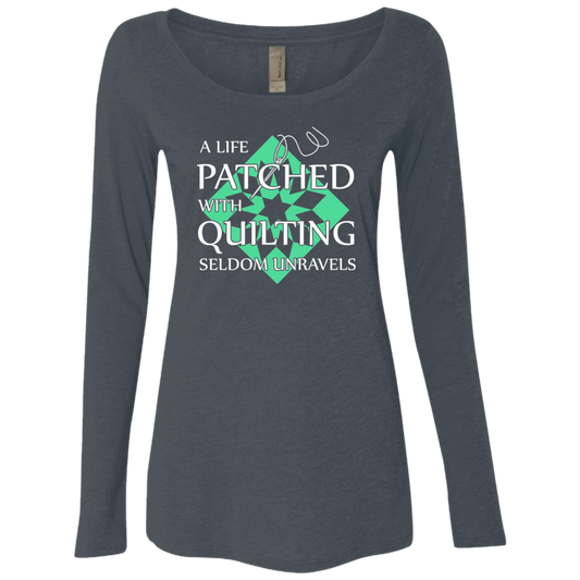Quilting Seldom Unravels Ladies Triblend LS Scoop