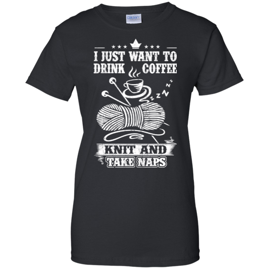 Coffee-Knit-Nap Ladies Custom 100% Cotton T-Shirt