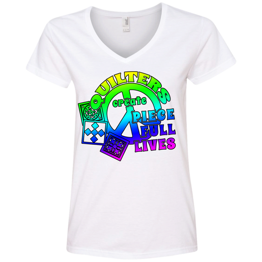 Quilters Create Piece Full Lives Ladies V-neck Tee