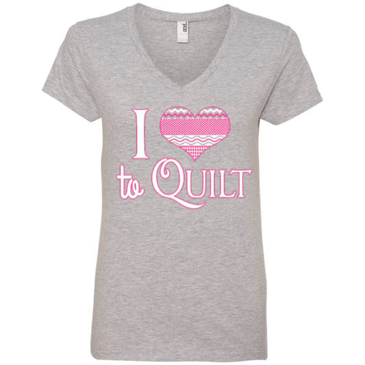 I Heart to Quilt Ladies V-neck Tee