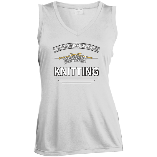 I Am Happiest When I'm Knitting Ladies Sleeveless V-neck