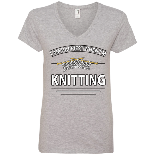 I Am Happiest When I'm Knitting Ladies V-neck Tee