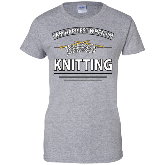 I Am Happiest When I'm Knitting Ladies Custom 100% Cotton T-Shirt