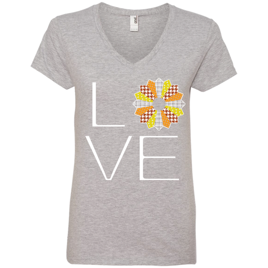 LOVE Quilting (Fall Colors) Ladies V-neck Tee
