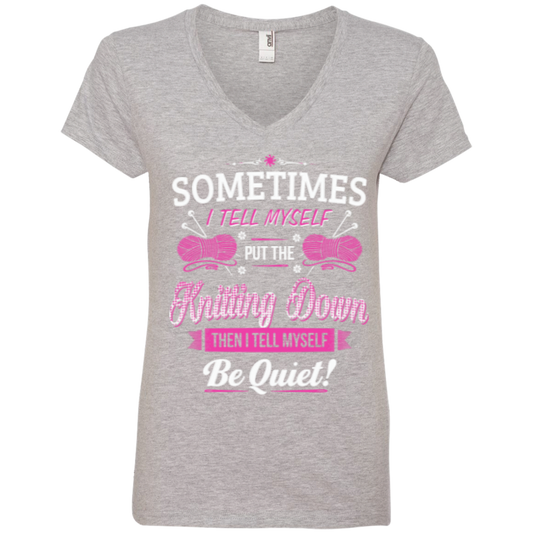 Put The Knitting Down Ladies V-Neck Tee