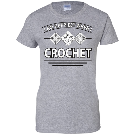 I Am Happiest When I Crochet Ladies Custom 100% Cotton T-Shirt