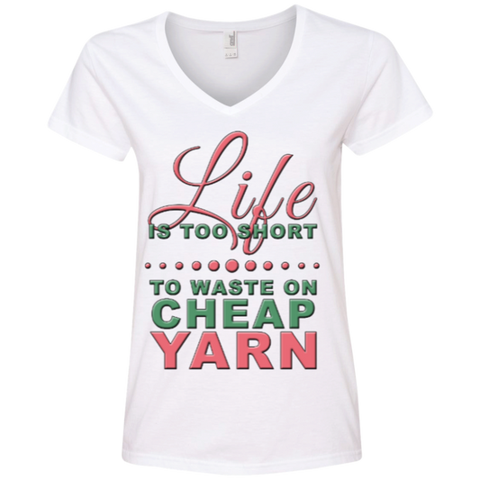 Life Is Too Short to Waste on Cheap Yarn Ladies V-Neck Tee