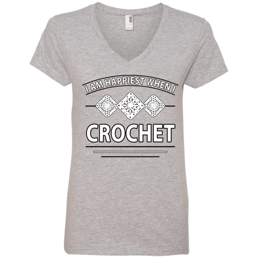 I Am Happiest When I Crochet Ladies V-neck Tee