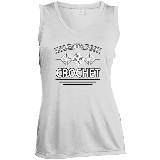 I Am Happiest When I Crochet Ladies Sleeveless V-neck