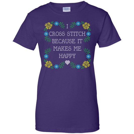 I Cross Stitch Because It Makes Me Happy Ladies Custom 100% Cotton T-Shirt