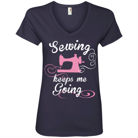 Sewing Keeps Me Going Ladies V-Neck Tee
