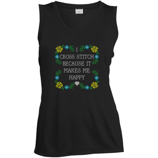 I Cross Stitch Because It Makes Me Happy Ladies Sleeveless V-neck