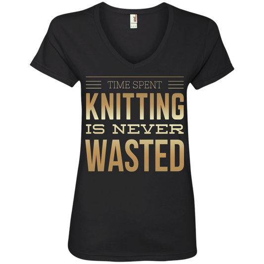 Time Spent Knitting Ladies V-Neck Tee