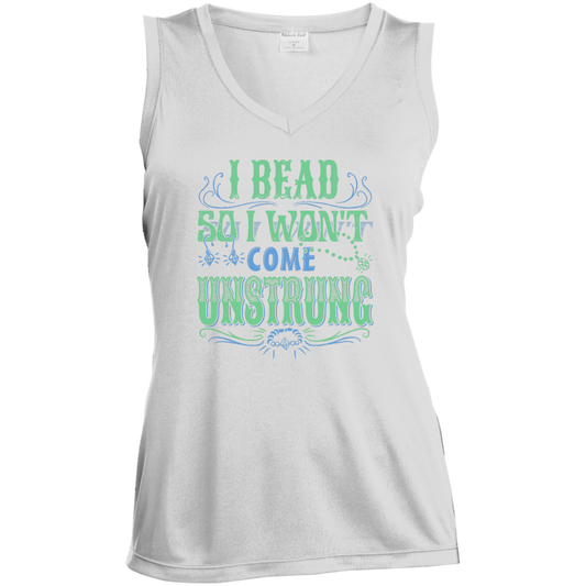 I Bead So I Won't Come Unstrung (aqua) Ladies Sleeveless V-neck