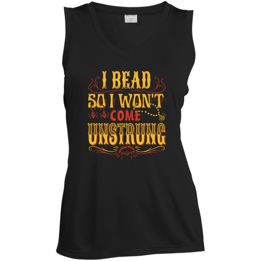 I Bead So I Won't Come Unstrung (gold) Ladies Sleeveless V-neck
