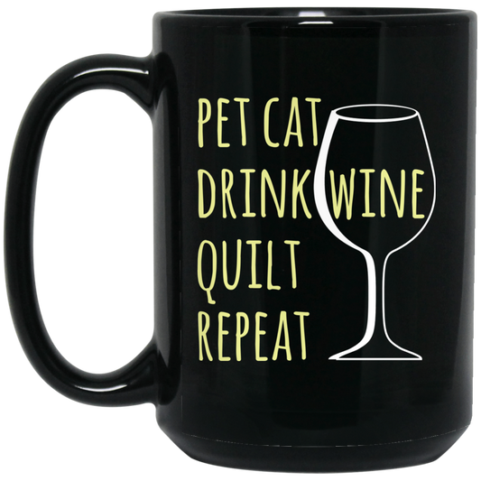 Pet Cat-Drink Wine-Quilt Black Mugs