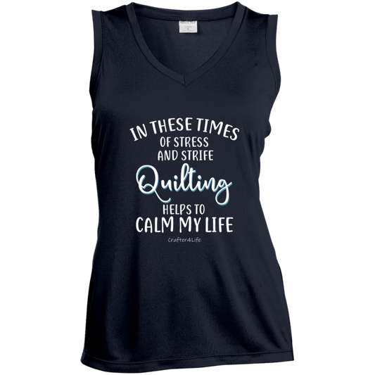 Quilting Helps to Calm My Life Ladies' Sleeveless Moisture Absorbing V-Neck