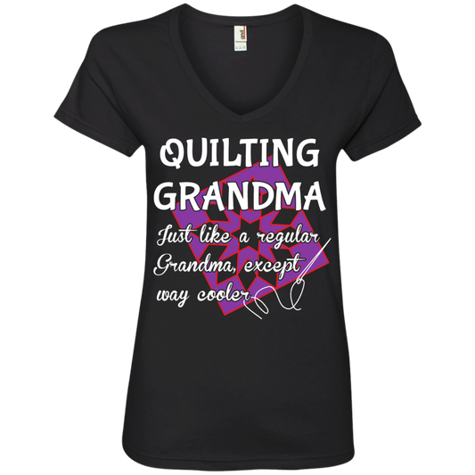 Quilting Grandma Ladies' V-Neck Tee
